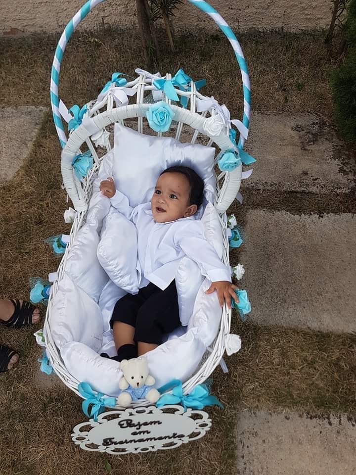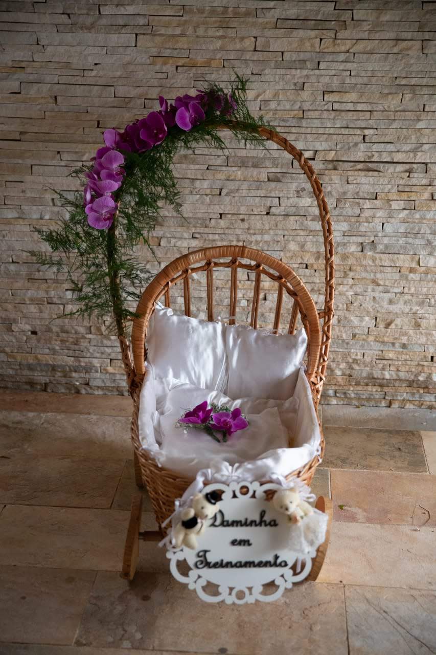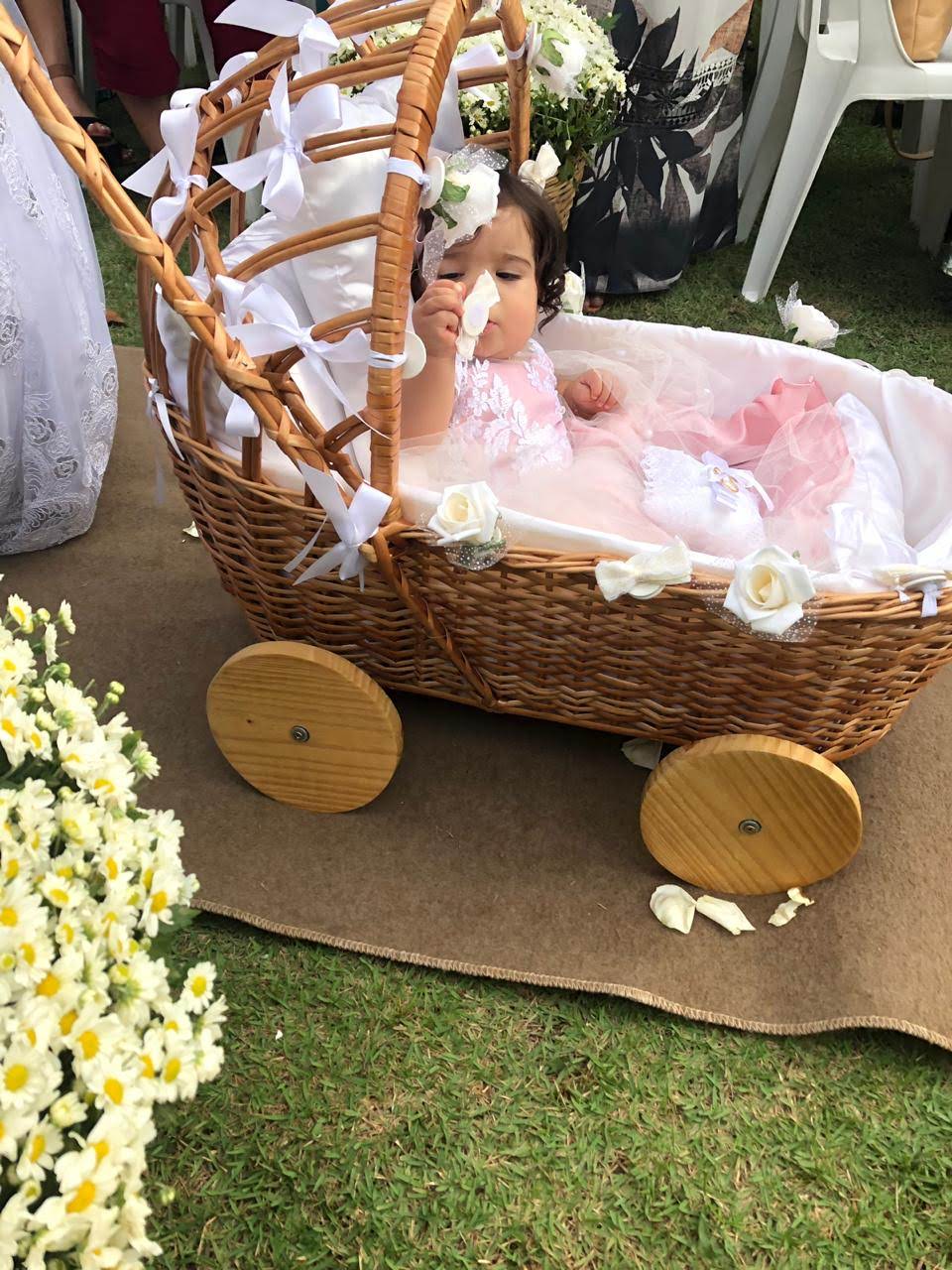 Todo em vime branco, pode ser personalizado com flores e fitas de varias cores.