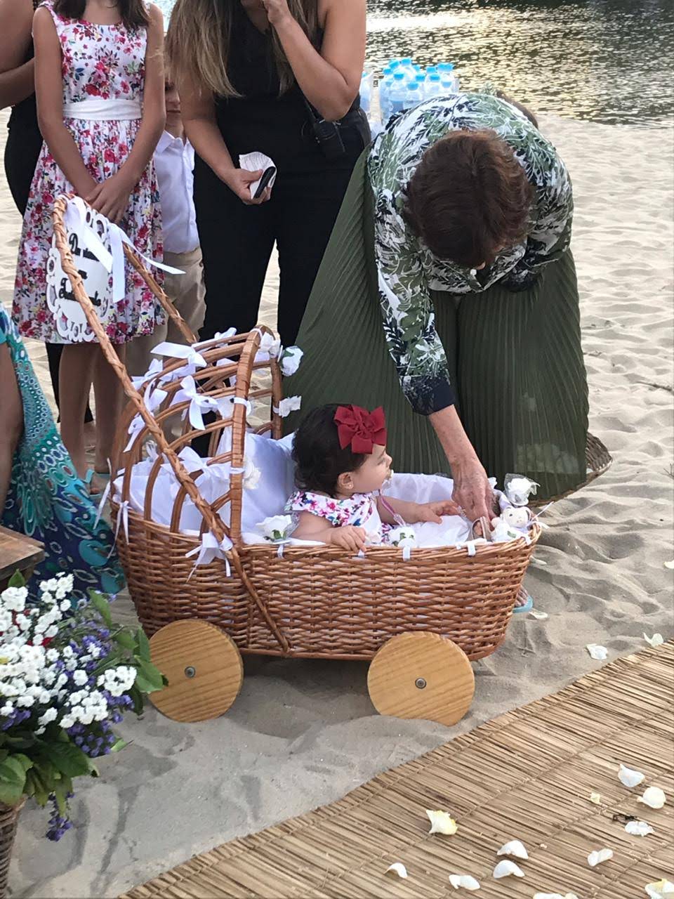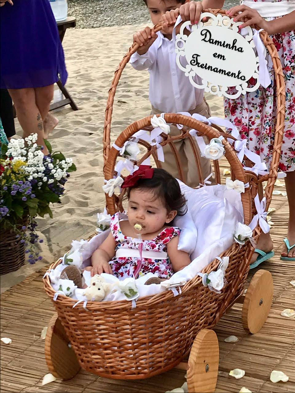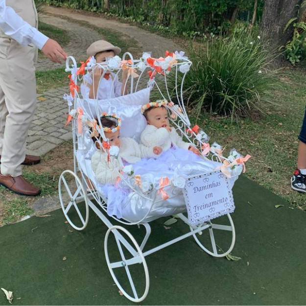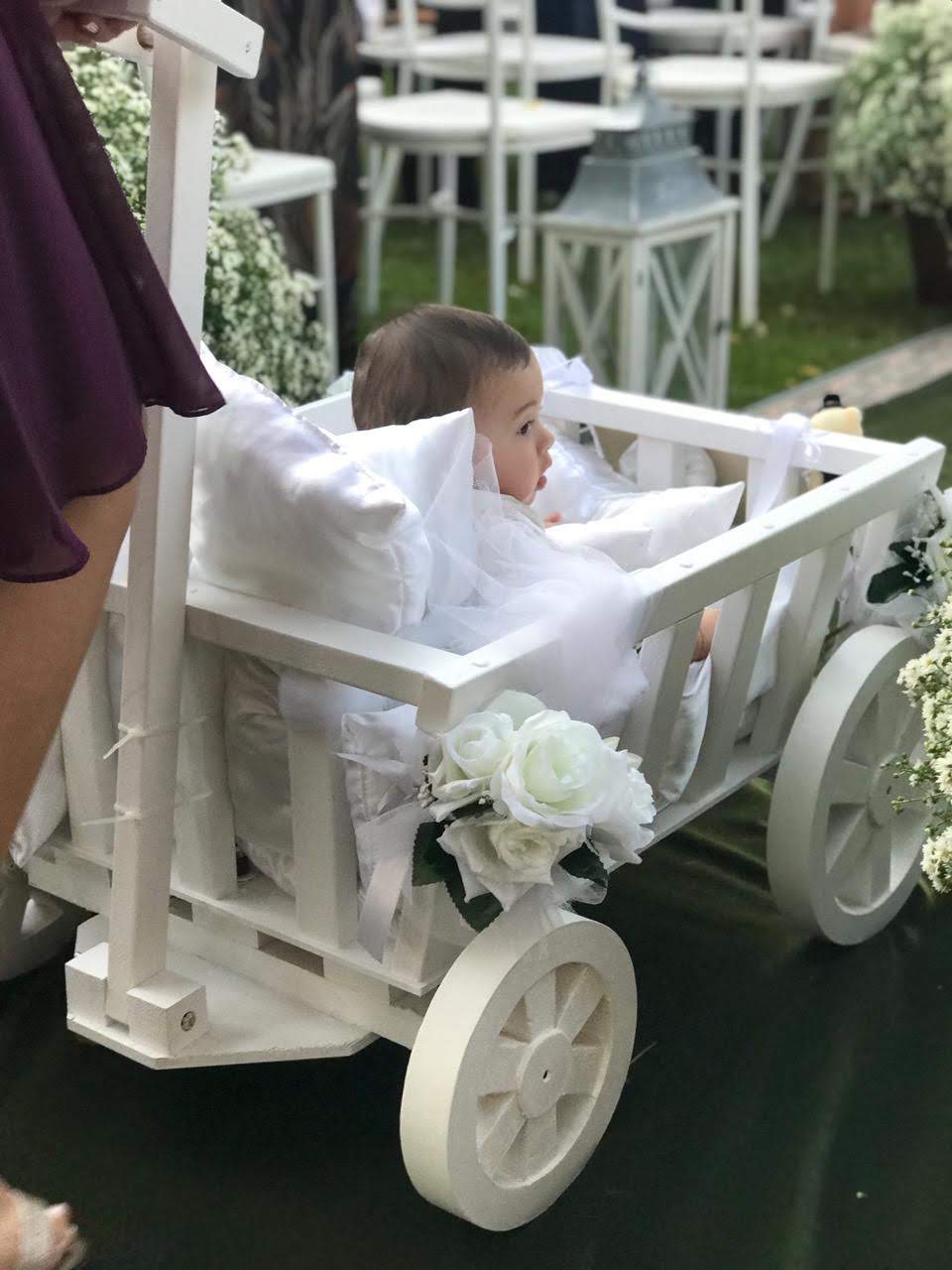 Todo em vime branco, pode ser personalizado com flores e fitas de varias cores.